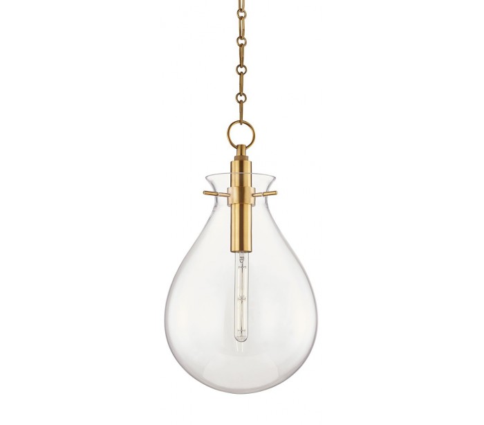 Ivy loftlampe udført i et design i antik messinglakeret stål og med skærm i klart glas. Lampen måler 32 cm i diameter og 65 - 195 cm i højden og anvender 1 x E27 lyskilde.