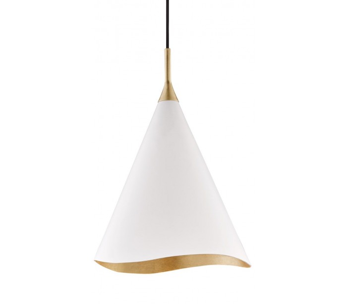 Martini loftlampe udført i et design med yderside i mat hvidlakeret aluminium og inderside i antik bladguld farvet aluminium. Lampen måler 33 cm i diameter og 65 - 363 cm i højden og anvender 1 x E27 lyskilde.