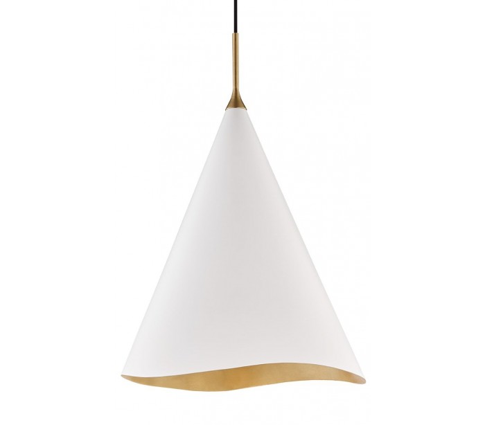 Martini loftlampe udført i et design med yderside i mat hvidlakeret aluminium og inderside i antik bladguld farvet aluminium. Lampen måler 33 cm i diameter og 65 - 363 cm i højden og anvender 1 x E27 lyskilde.