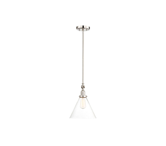 Drake 1 loftlampe udført i et design af poleret nikkel lakeret stål og klart glas. Lampen er fra amerikanske Savoy House og anvender 1 x E27 lyskilde og måler 25 cm i diameter og 29 - 109 cm i højden.