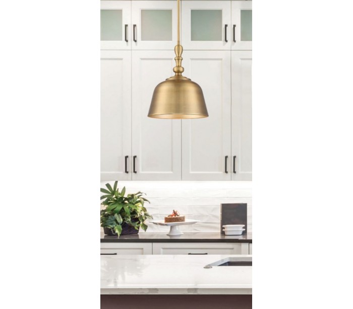 Berg 1 loftlampe udført i et design af varm messinglakeret stål. Lampen er fra amerikanske Savoy House og anvender 1 x E27 lyskilde og måler 30 cm i diameter og 36 - 116 cm i højden.