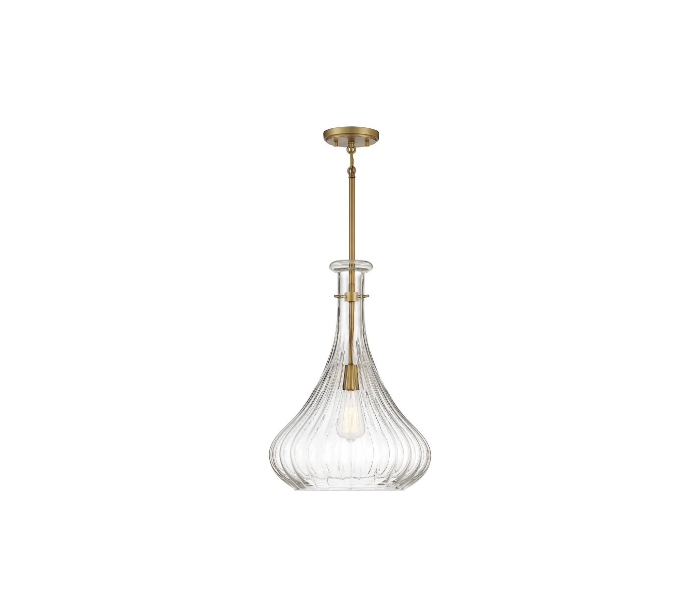 Bristo 1 loftlampe udført i et design af varm messinglakeret stål og klart rillet glas. Lampen er fra amerikanske Savoy House og anvender 1 x E27 lyskilde og måler 36 cm i diameter og 51 - 183 cm i højden.