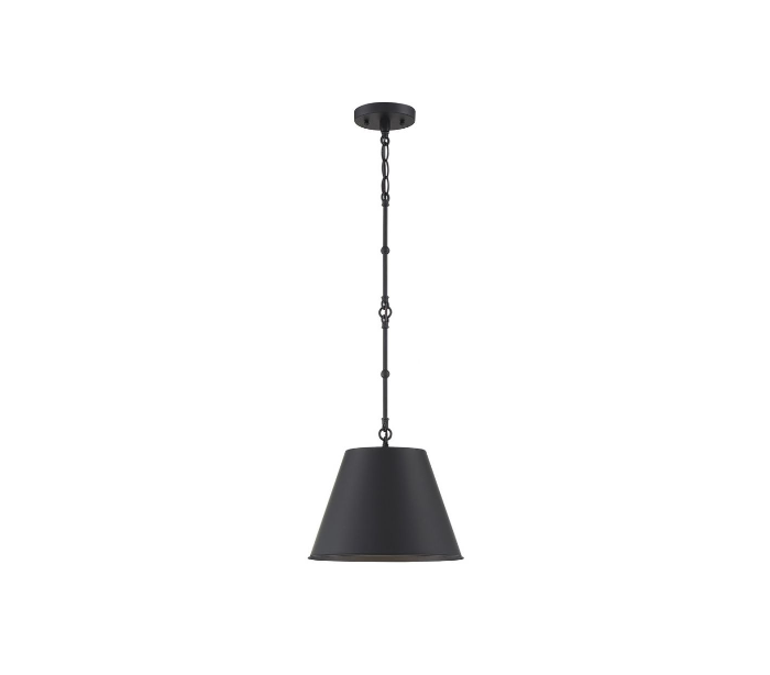 Alden 1 loftlampe udført i et design af mat sortlakeret stål. Lampen er fra amerikanske Savoy House og anvender 1 x E27 lyskilde og måler 30 cm i diameter og 22 - 76 cm i højden.