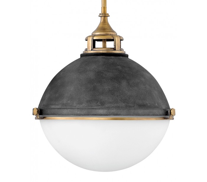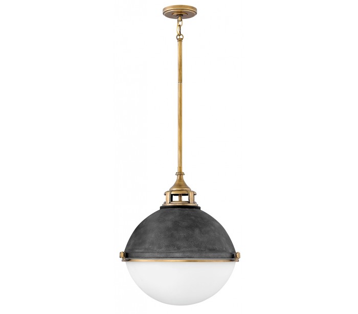 Fletcher Loftlampe i stål og glas Ø45,7 cm 3 x E27 - Aldret zink/Antik messing/Opalhvid