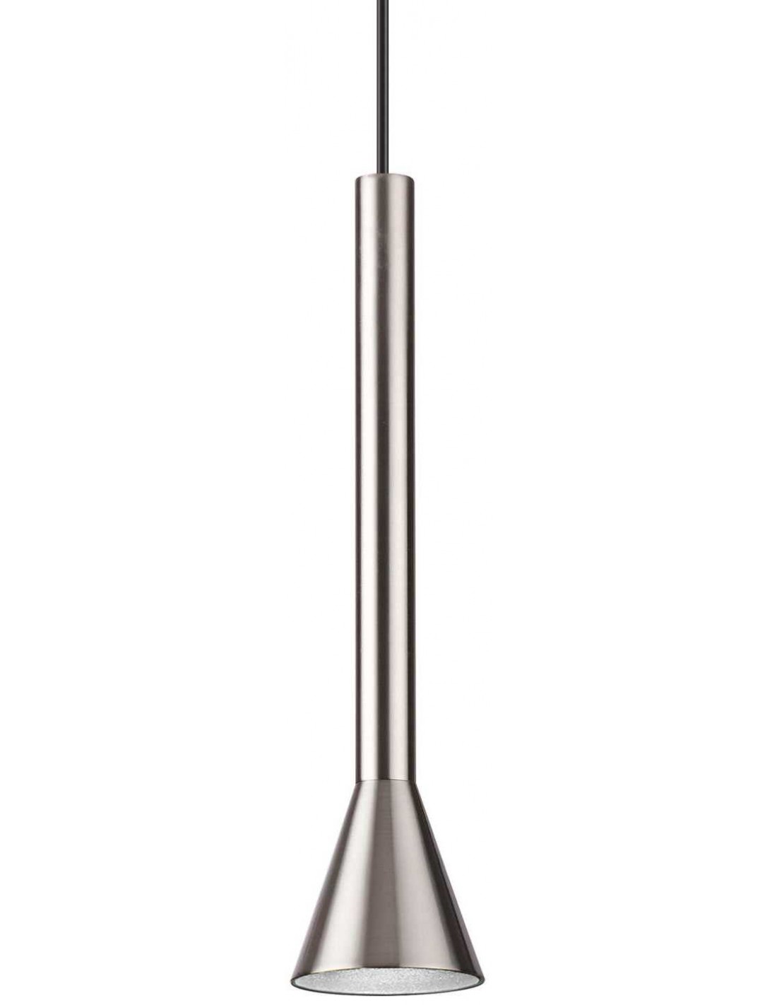 Diesis loftlampe udført i et moderne design af satineret nikkel lakeret metal. Lampen måler 31,5 - 243 cm i højden og 6 cm i diameter og anvender 7W LED lyskilde (inkl.). Lampen har sort ledning.