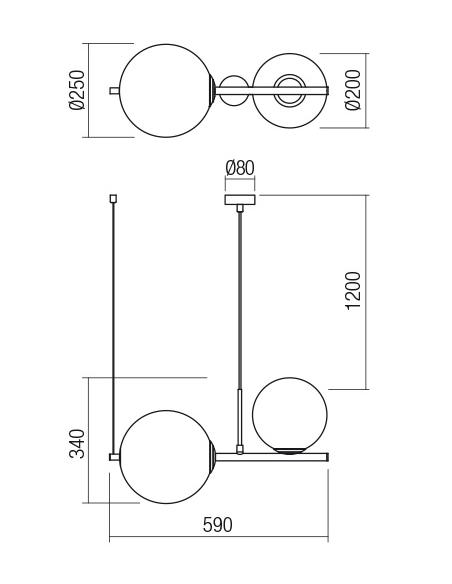 TALIS loftlampe udført i et design fremstillet i aluminium og glas. Lampen måler 154 cm i højden og 59 cm i bredden og anvender 2 x E27 lyskilder (Ekskl.).