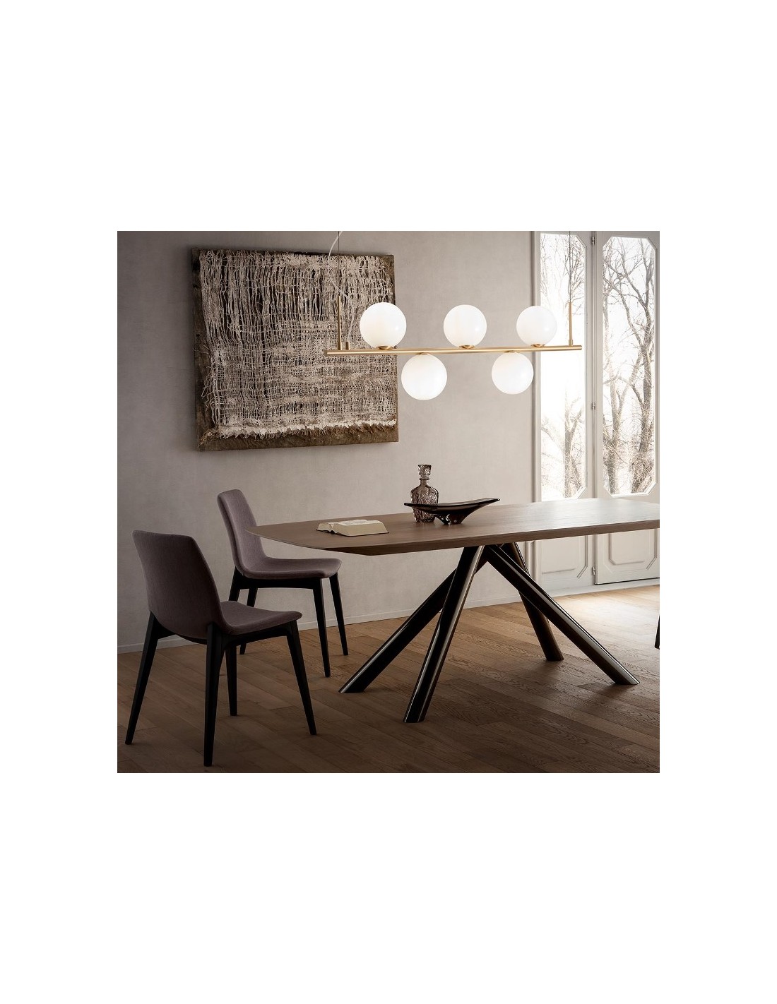TALIS loftlampe udført i et design fremstillet i aluminium og glas. Lampen måler 154 cm i højden og 115 cm i bredden og anvender 5 x E14 lyskilder (Ekskl.).