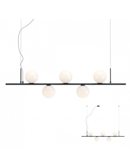 TALIS Loftlampe i aluminium og glas B115 cm 5 x E14 - Mat sort/Opalhvid