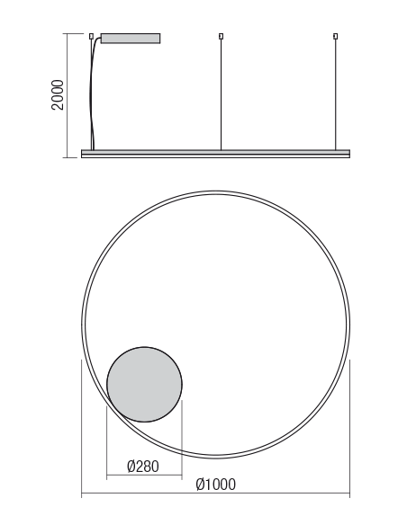 ORBIT Loftlampe i aluminium Ø100 cm 68W LED - Mat sort