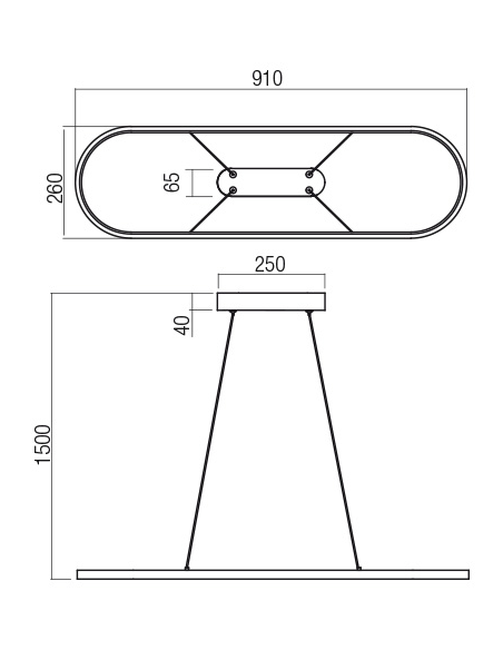 LAP loftlampe udført i et design fremstillet i aluminium. Lampen måler op til 150 cm i højden og 91 x 26 cm i bredde og dybde og anvender 32W LED lyskilde (Inkl.).