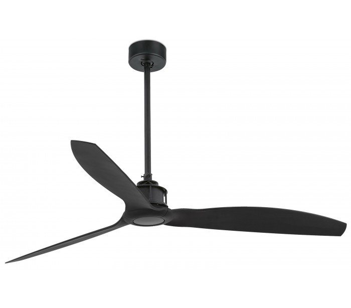 Just loftventilator i et smukt udført design, fremstillet i mat sortlakeret metal og med blade i polycarbonat. Ventilatoren måler 128 cm i diameter og er ideel til rum på op til 17 m2. Der medfølger fjernbetjening til ventilatoren og er indstillelig i 6 hastigheder med 51-77-103-129-155-185 omdrejninger i minuttet.