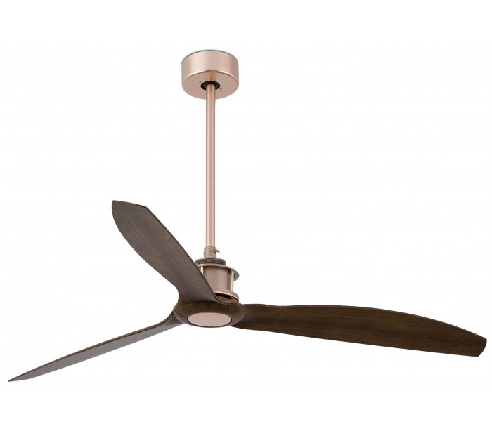 Just loftventilator i et smukt udført design, fremstillet i kobberlakeret metal og med blade i polycarbonat. Ventilatoren måler 128 cm i diameter og er ideel til rum på op til 17 m2. Der medfølger fjernbetjening til ventilatoren og er indstillelig i 6 hastigheder med 51-77-103-129-155-185 omdrejninger i minuttet.