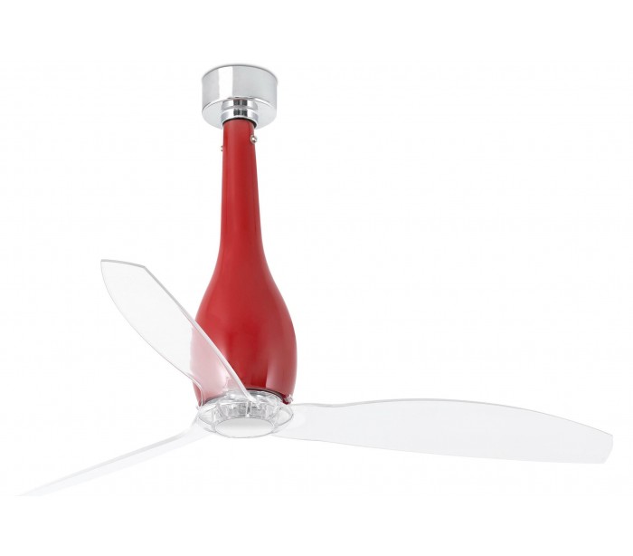 Eterfan loftventilator i et smukt udført design, fremstillet i rødlakeret metal og med blade i transparent polycarbonat. Ventilatoren måler 128 cm i diameter og er ideel til rum på op til 17 m2. Der medfølger fjernbetjening til ventilatoren og er indstillelig i 6 hastigheder med 51-77-103-129-155-185 omdrejninger i minuttet.