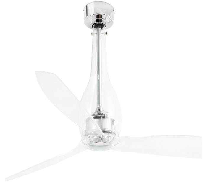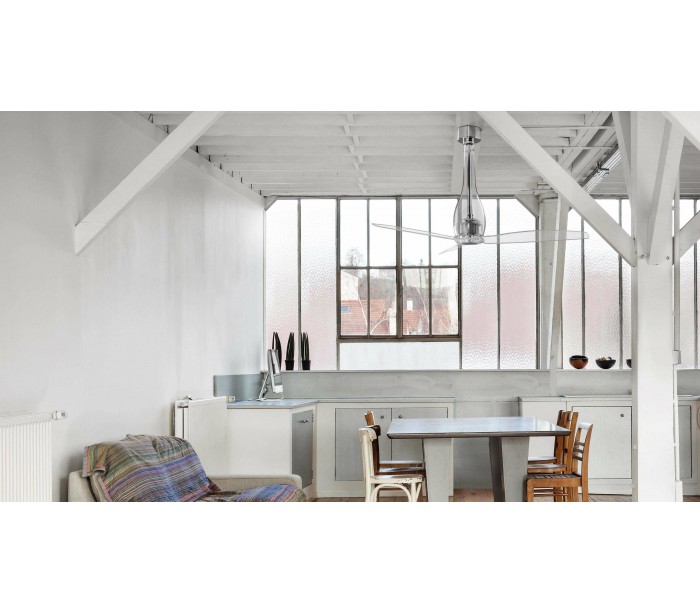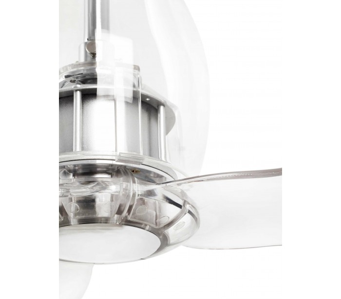 Eterfan loftventilator i et smukt udført design, fremstillet i transparent glas og med blade i transparent polycarbonat. Ventilatoren måler 128 cm i diameter og er ideel til rum på op til 17 m2. Der medfølger fjernbetjening til ventilatoren og er indstillelig i 6 hastigheder med 51-77-103-129-155-185 omdrejninger i minuttet.