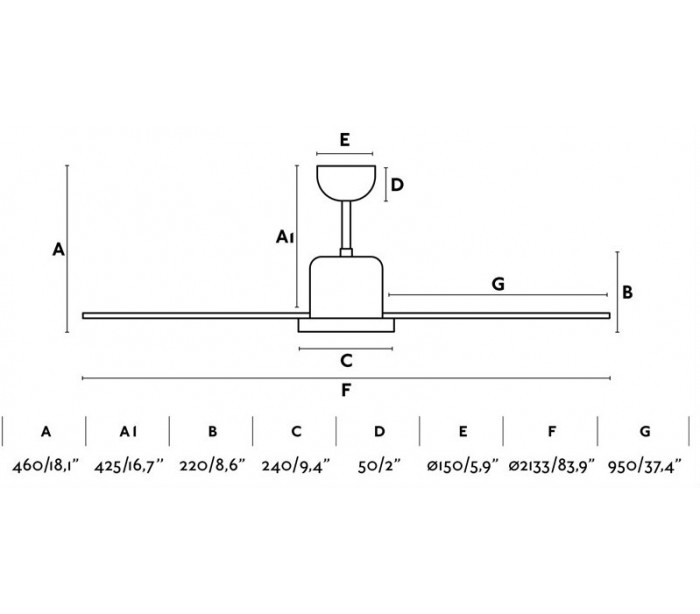 Andros loftventilator i et smukt udført design, fremstillet i brunlakeret metal og med blade i brunlakeret aluminium. Ventilatoren måler 213,3 cm i diameter og er ideel til rum på op til 28 m2. Der medfølger fjernbetjening til ventilatoren og er indstillelig i 6 hastigheder med 30-41-53-64-74-88 omdrejninger i minuttet.