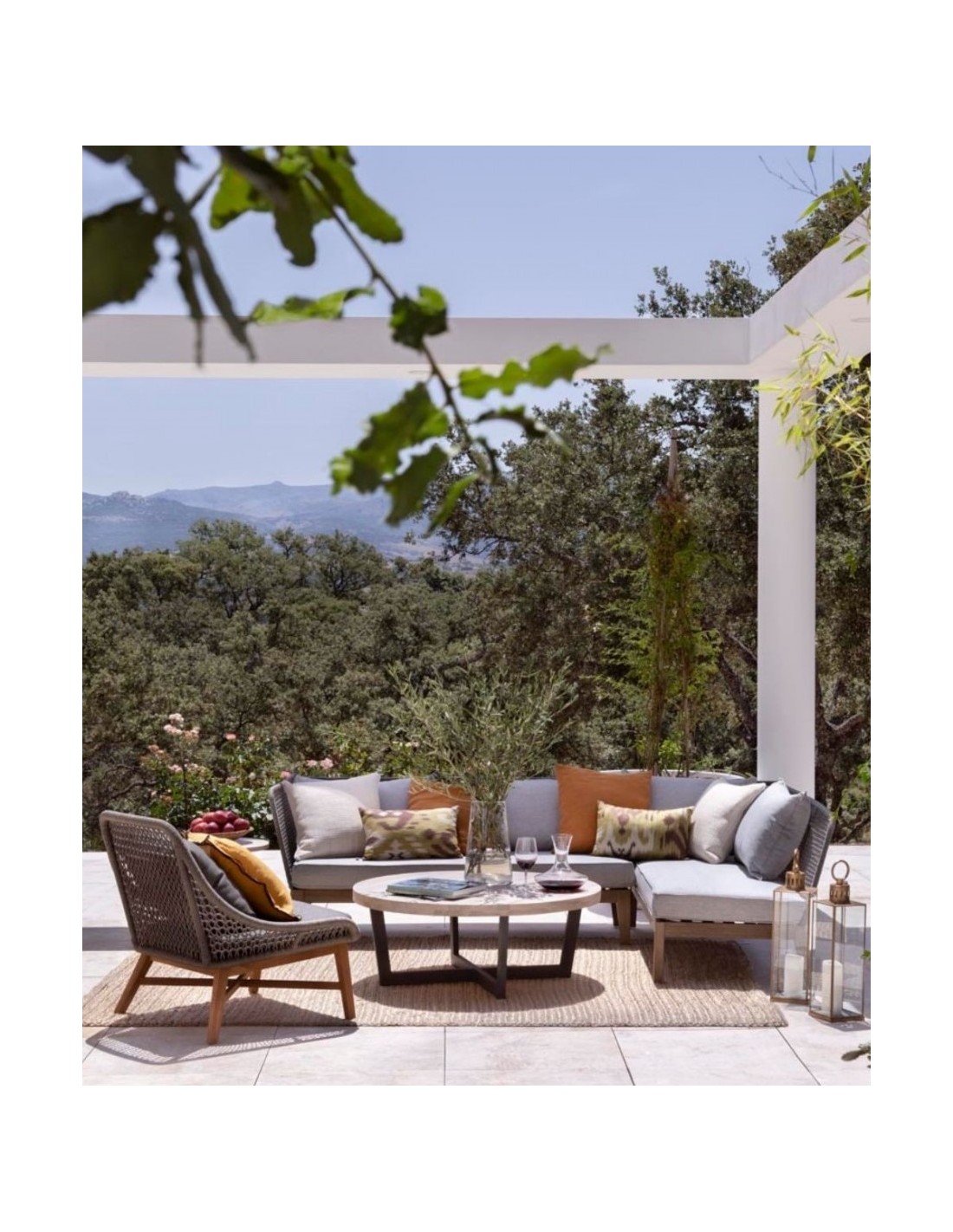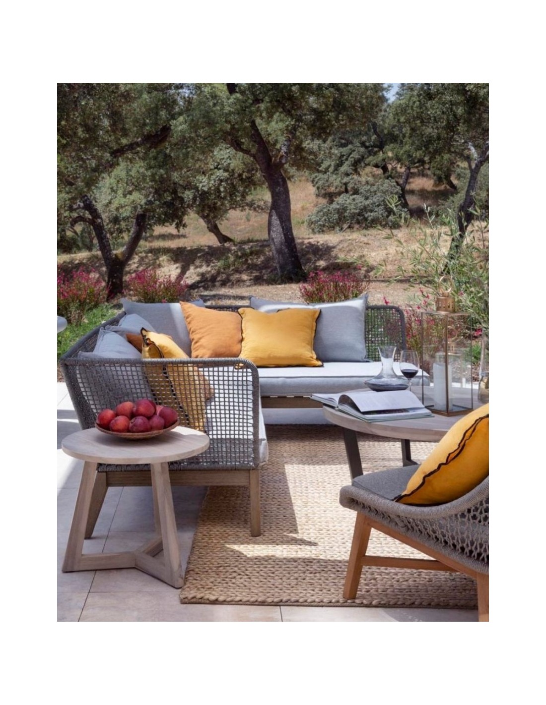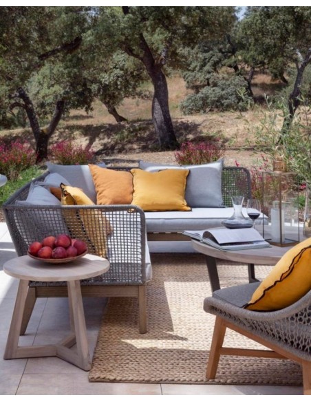 PHOENIX Loungesofa i eucalyptustræ og reb 239 x 175 cm - Stengrå/Grå