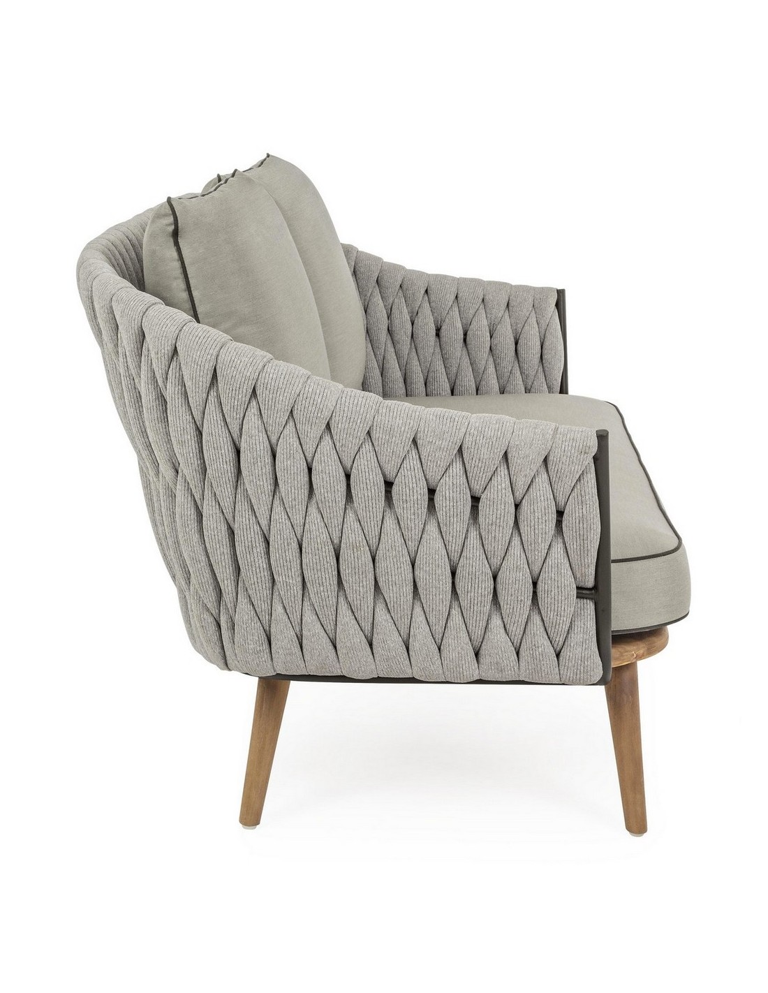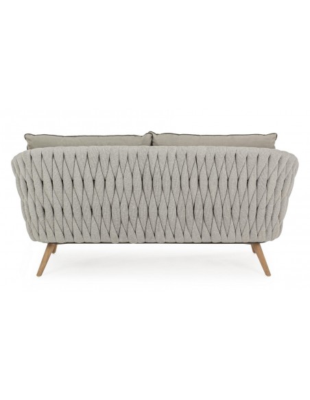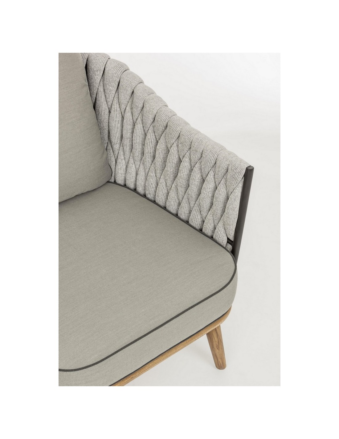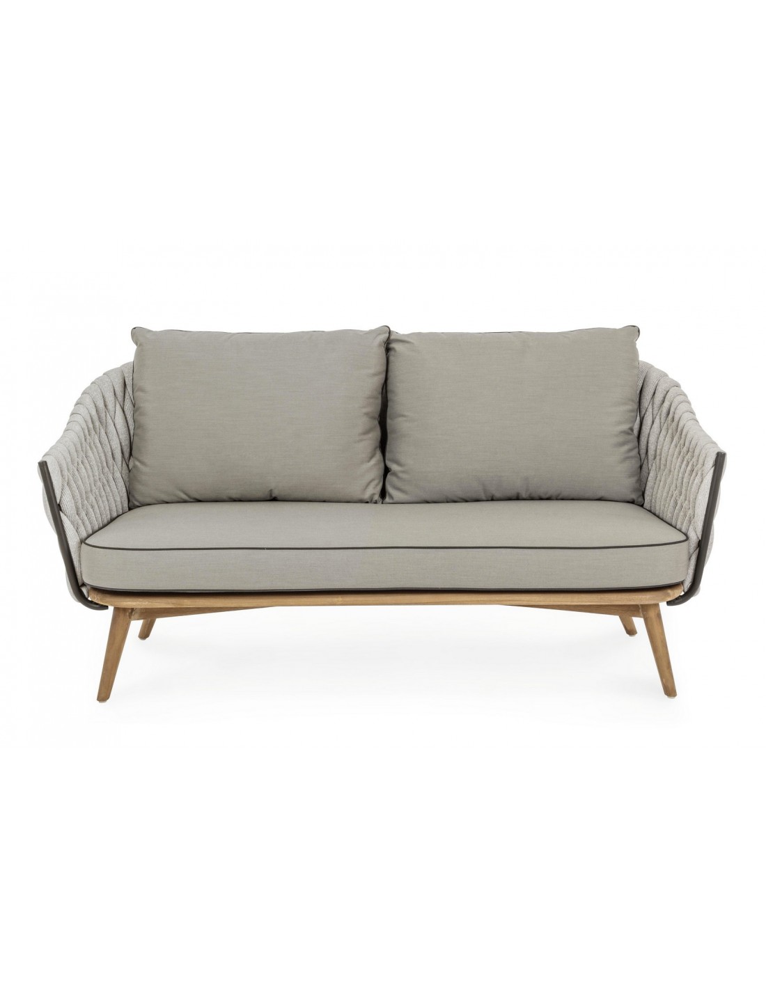 Loungesofa udført i et design af rustikt teaktræ og lakeret aluminium beklædt med UV resistent og vandafvisende hilon med skumfyld. Dertil hynder i UV resistent og vandafvisende akryl. Sofaen måler 172 cm i bredden. Møblet tåler regnvejr, men hynder og puder anbefaler vi dog at opbevare indendørs, når møblet ikke er i brug.
