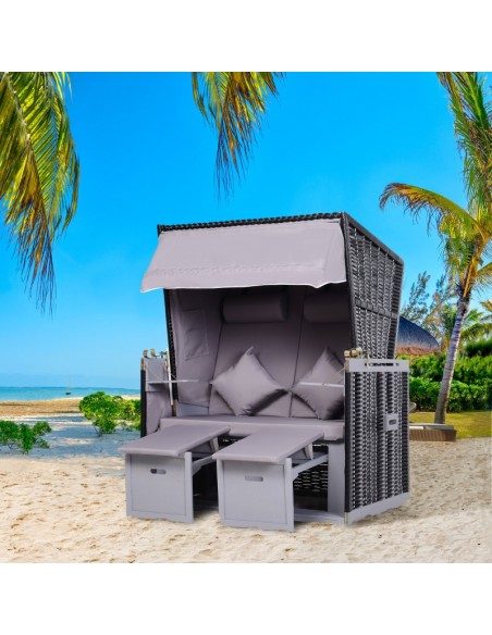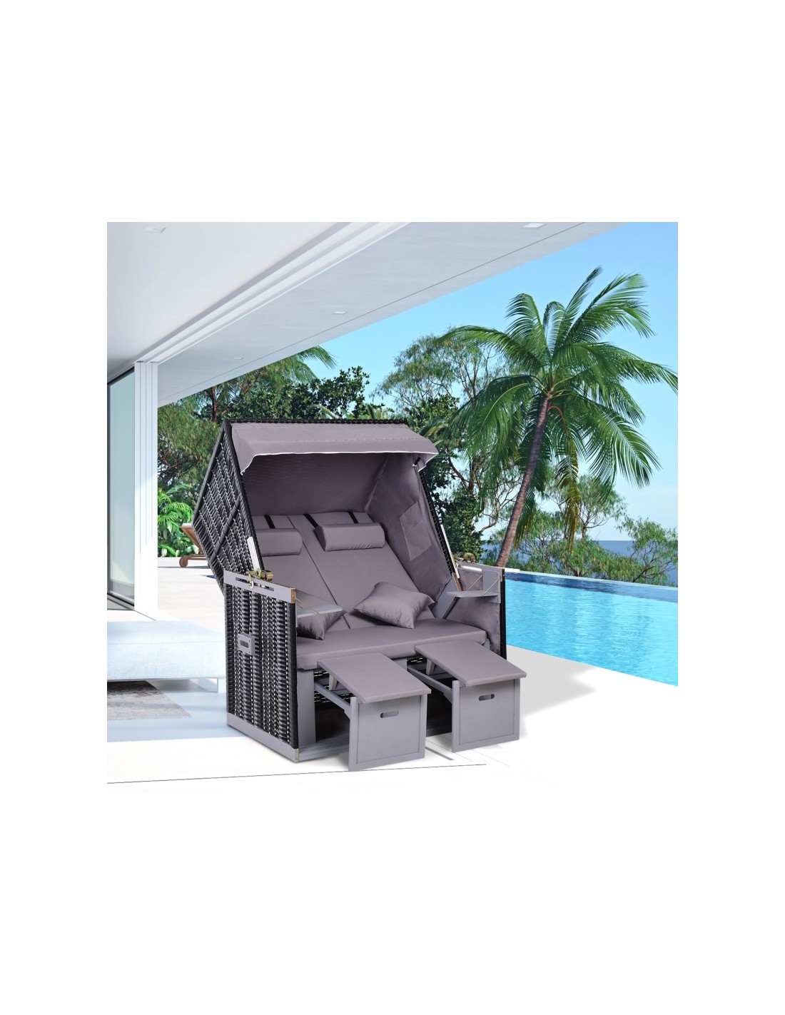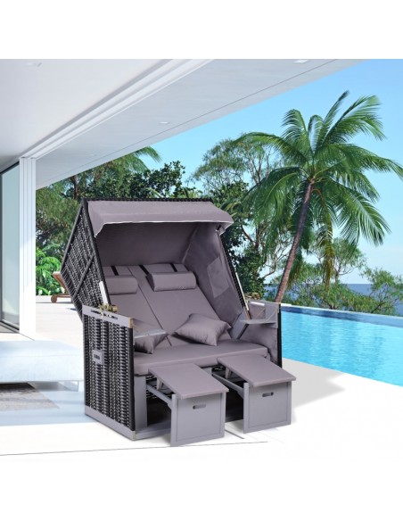 Hollywood Loungesofa i polyrattan og polyester H150 x B118 cm - Mørkegrå/Grå