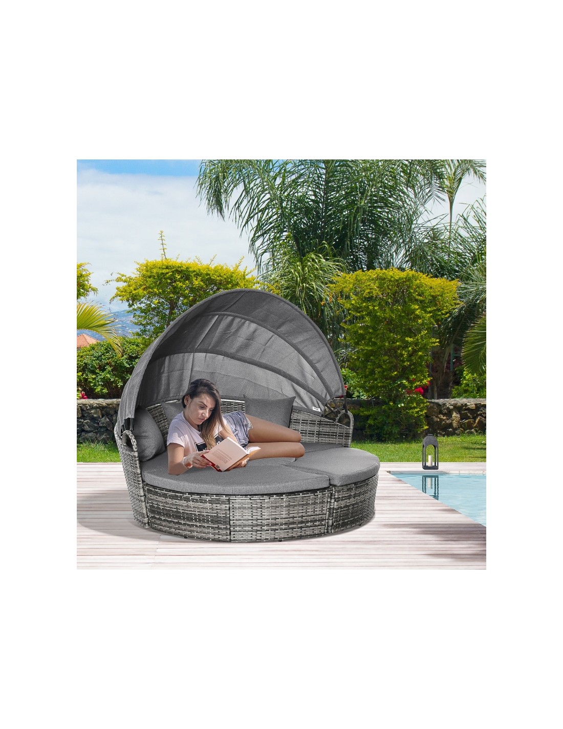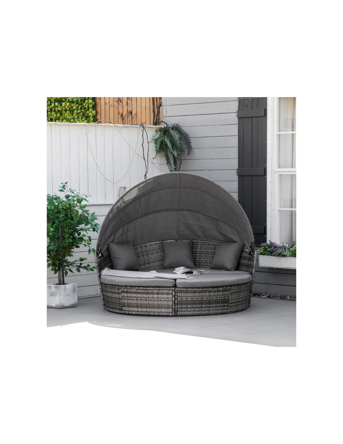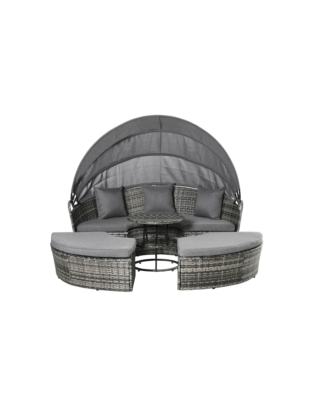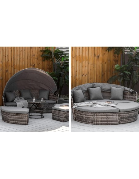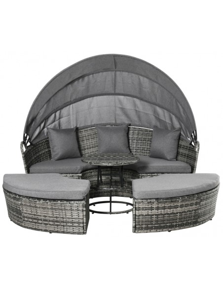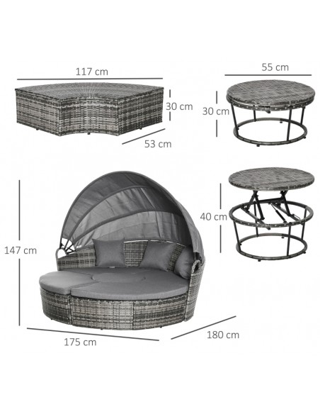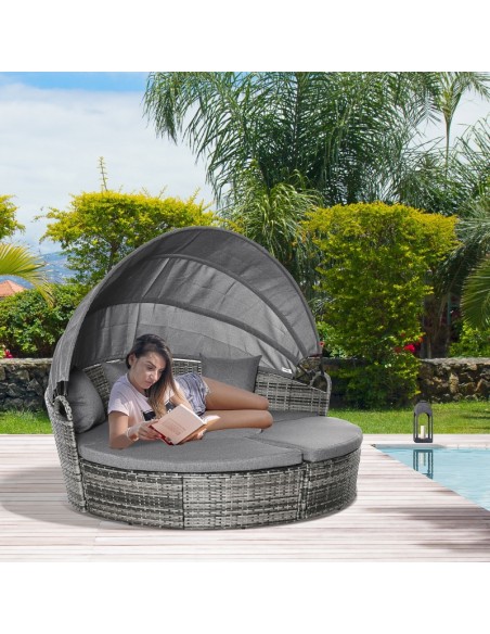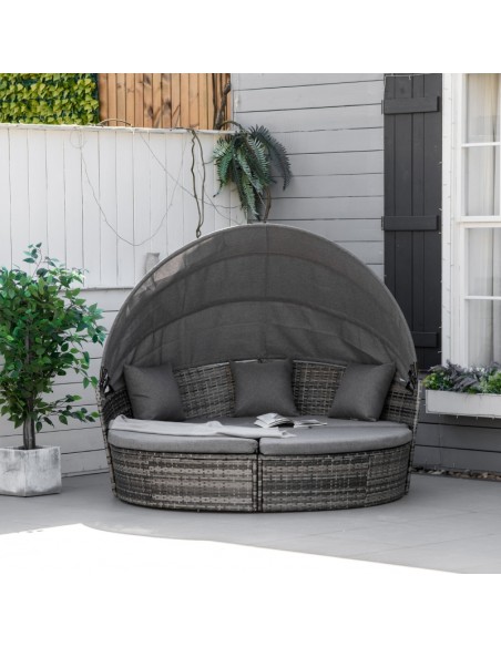 Daybed Solseng i polyrattan og polyester H147 x B175 x D180 cm - Mørkegrå/Grå