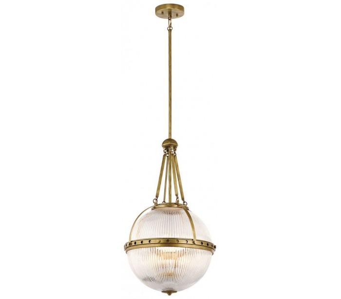 Aster loftlampe i et smukt industrielt design fra amerikanske Kichler. Lampen leveres til europæisk standard til 3 x E14 lyskilder. Lampen måler 38,4 cm i diameter og er fremstillet i messinglakeret stål og glas.