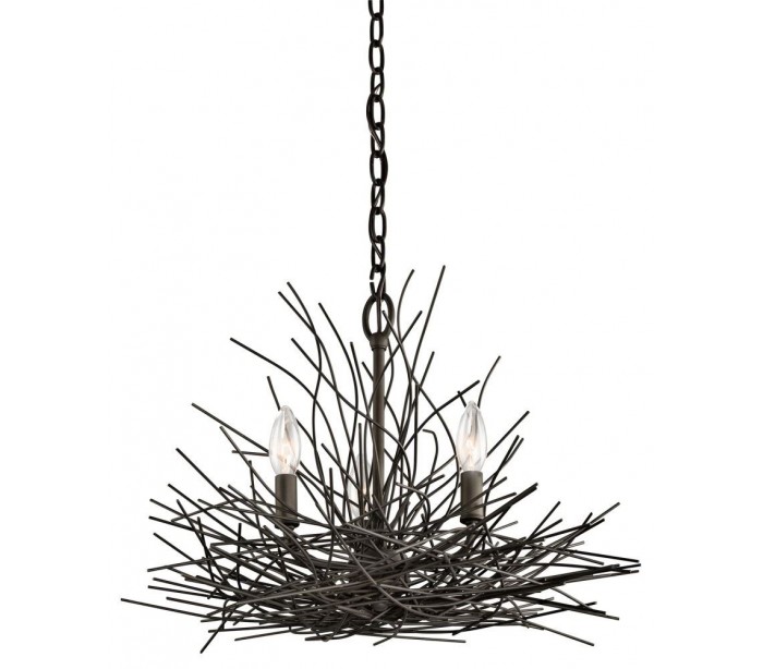 Organique lysekrone i et industrielt design fra amerikanske Kichler. Lampen måler 45,9 cm i diameter og leveres til europæisk standard til 3 x E14 lyskilder.