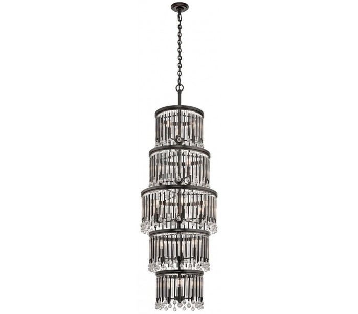 Piper lysekrone i et industrielt design fra amerikanske Kichler. Lampen måler 56,5 cm i diameter og 188,1 - 375,6 cm i højden. Lampen leveres til europæisk standard til 18 x E14 lyskilder.