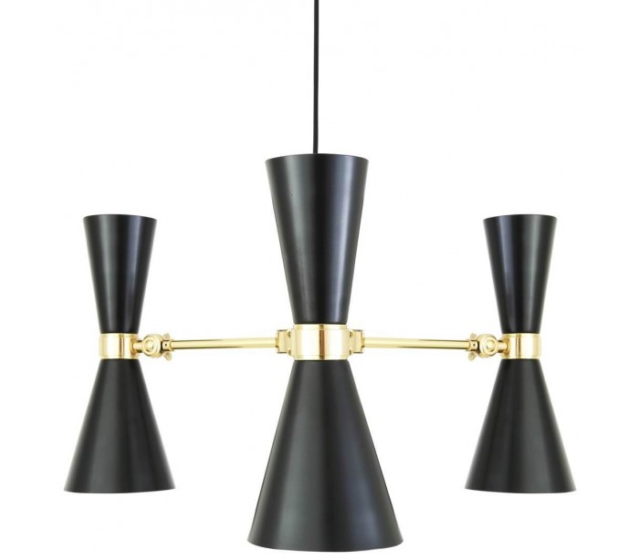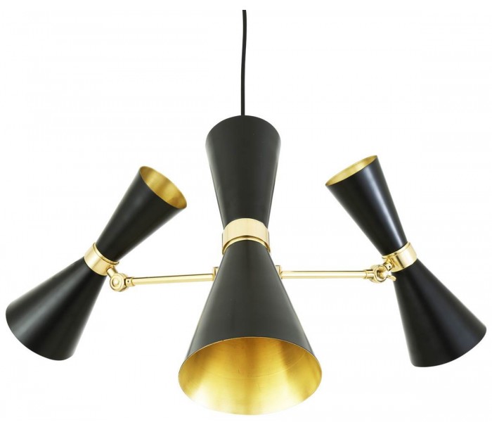 Cairo lysekrone fremstillet i et moderne design i poleret messing og med skærme i sortlakeret messing. Lampen måler 70 cm i diameter og anvender 3 x GU10 LED lyskilder (Ekskl.).