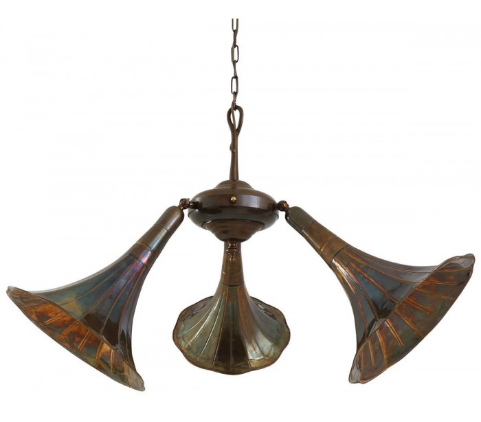 Grammophone lysekrone Ø66 - 100 cm 3 x E27 - Antik messing