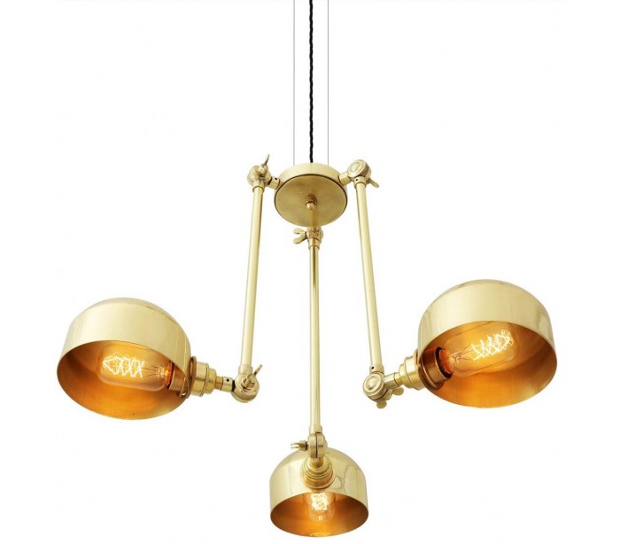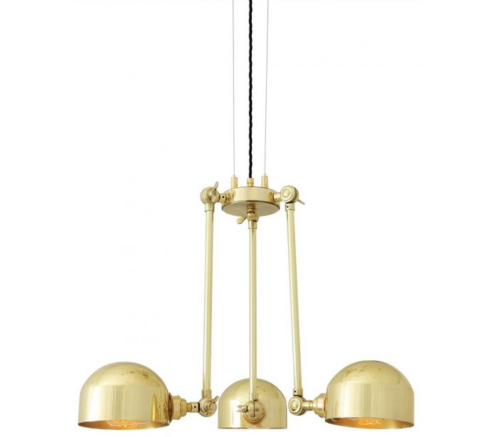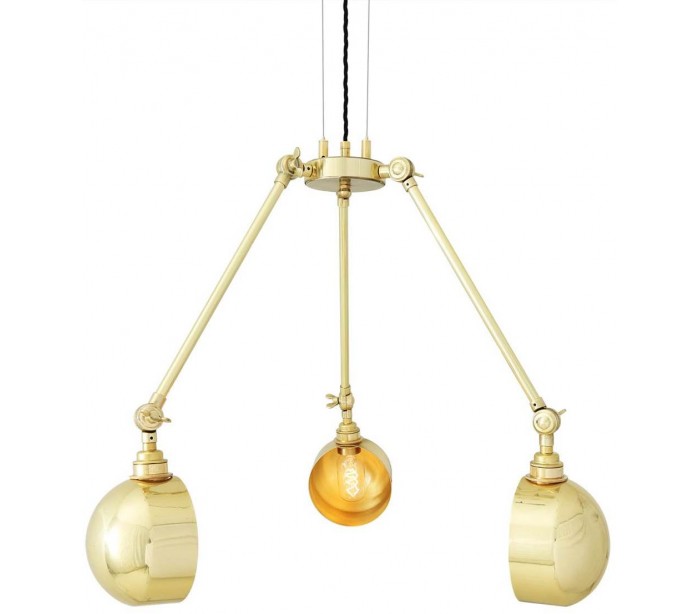 Neiva lysekrone fremstillet i et industrielt design i poleret messing. Lampen måler via justerbare lampearme 30 - 70 cm i diameter og anvender 3 x E27 lyskilder (Ekskl.).