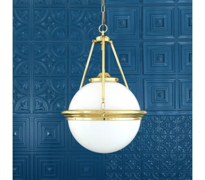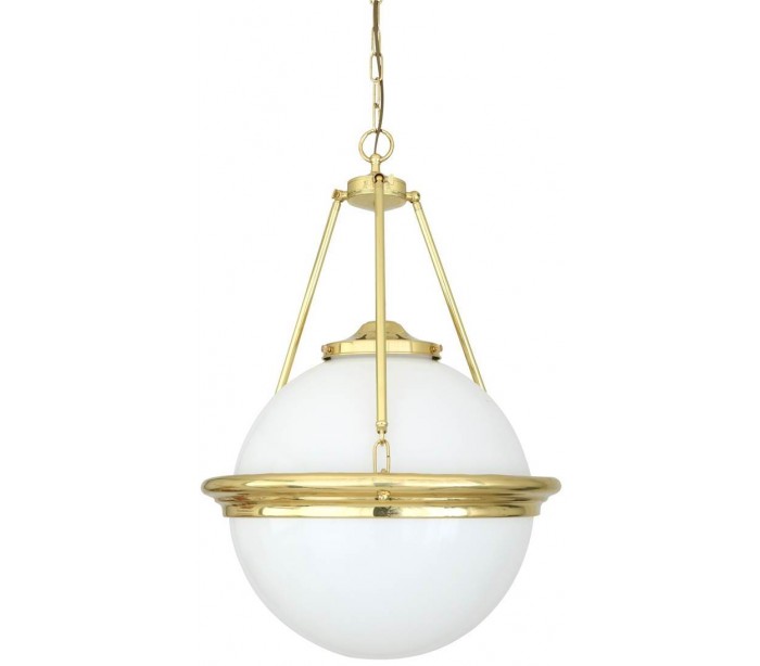 Ardee lysekrone fremstillet i et moderne design i poleret messing og med skærm i hvid glas. Lampen måler 50 cm i diameter og anvender 1 x E27 lyskilde (Ekskl.).