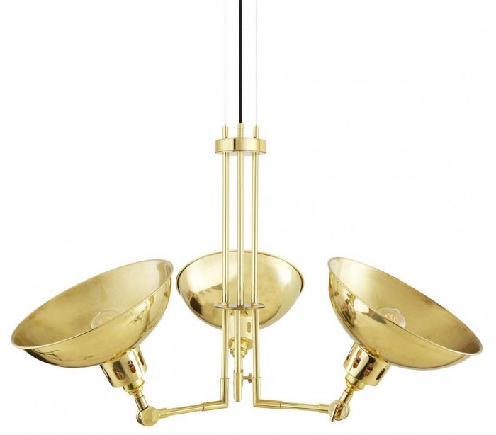 Sparti lysekrone fremstillet i et industrielt design i poleret messing. Lampen måler via justerbare lampearme 86 - 96 cm i diameter og anvender 3 x E27 lyskilder (Ekskl.).