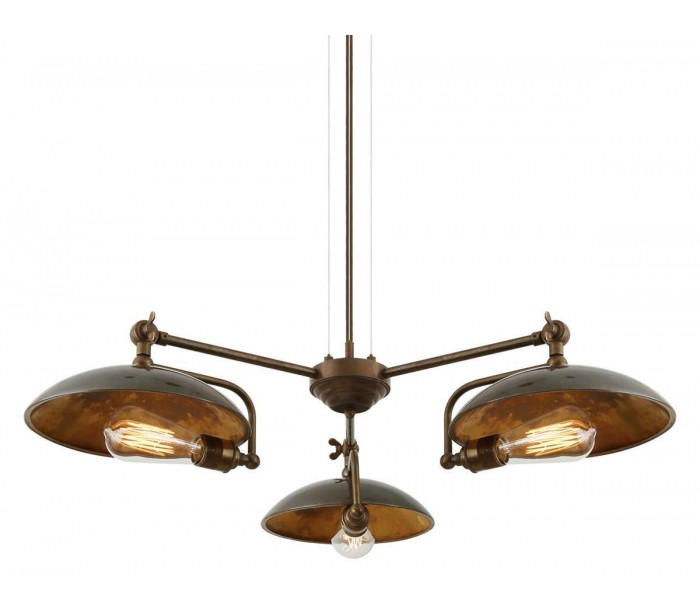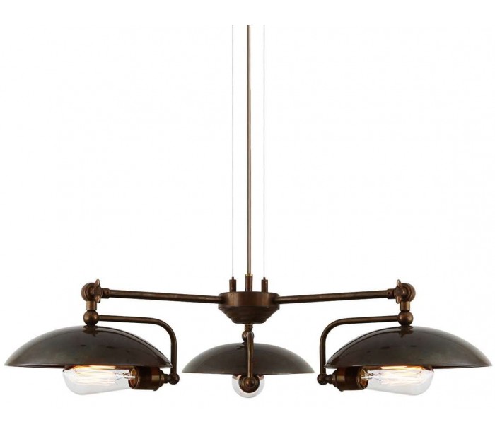 Cullen lysekrone fremstillet i et industrielt design i antik messing. Lampen måler via justerbare lampearme 66 - 71 cm i diameter og anvender 3 x E27 lyskilder (Ekskl.).