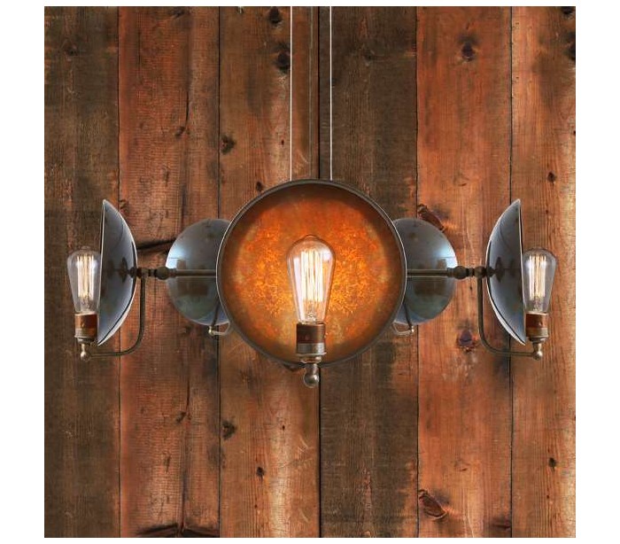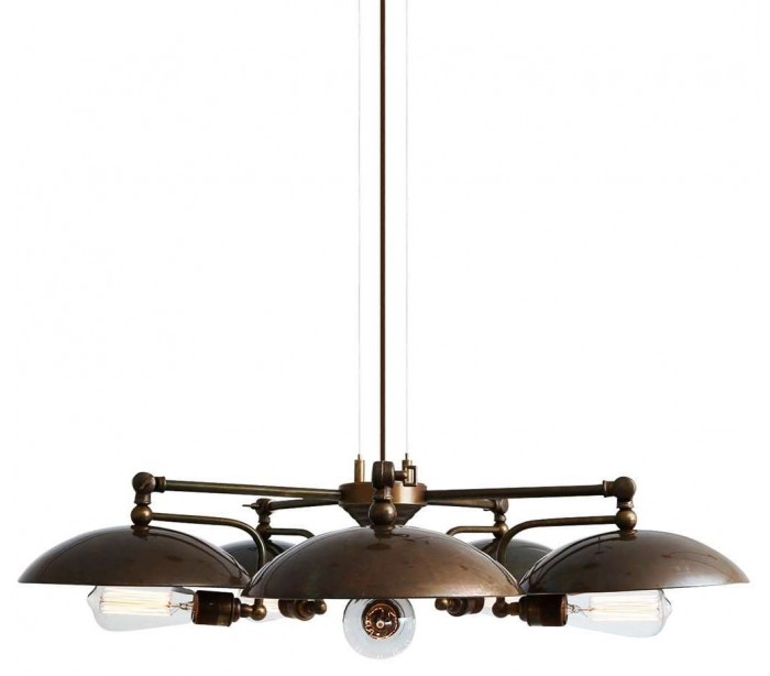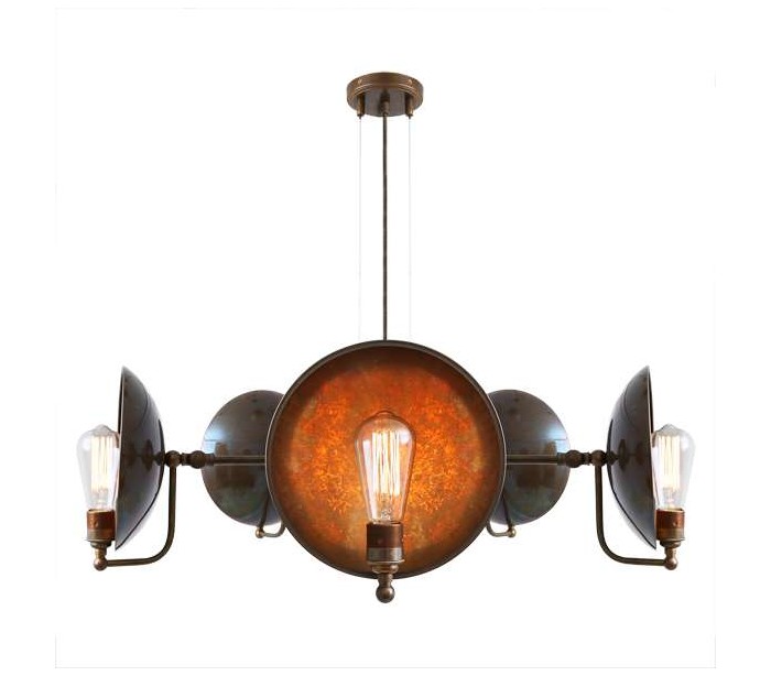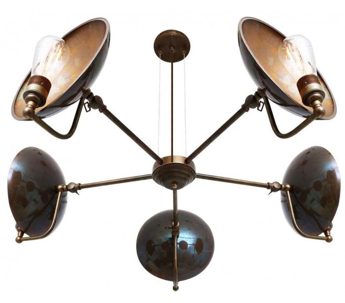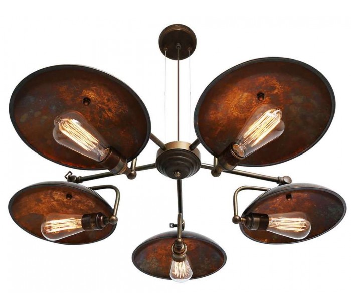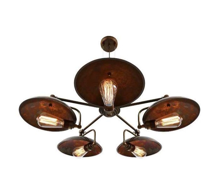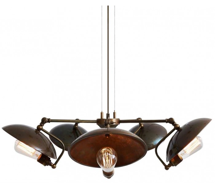 Cullen lysekrone fremstillet i et industrielt design i antik messing. Lampen måler via justerbare lampearme 81 - 88 cm i diameter og anvender 5 x E27 lyskilder (Ekskl.).