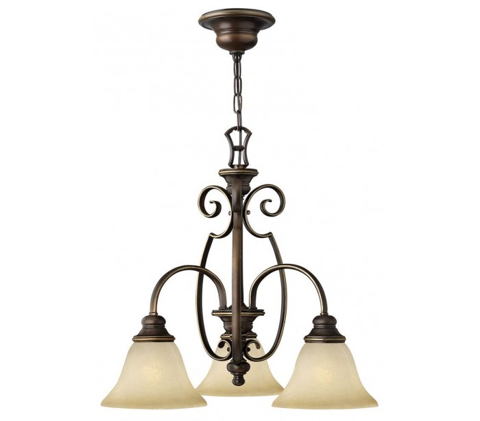 Cello lysekrone i et amerikansk design fra Hinkley. Lampen måler 57,1 cm i diameter og leveres til europæisk standard til 3 x E27 lyskilder. Lampen er udført i et design af antik bronzelakeret stål og skærme i alabaster glas.