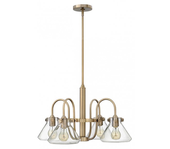 Congress lysekrone i et amerikansk design fra Hinkley. Lampen måler 68,6 cm i diameter og leveres til europæisk standard til 4 x E27 lyskilder. Lampen er udført i et design af børstet karamellakeret stål og skærme i glas.