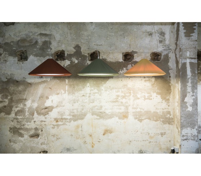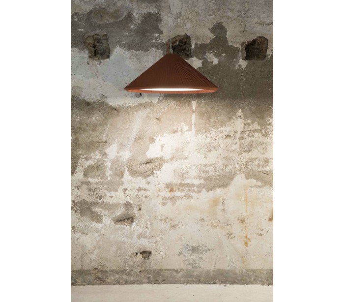 Lysekrone i et moderne design, fremstillet i bordeauxfarvet satinbånd, der giver en lækker belysning i rummet. Lampen måler 70 cm i diameter og anvender 3 x E27 lyskilder på max. 15W (Ekskl.).