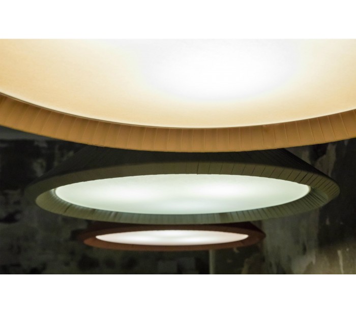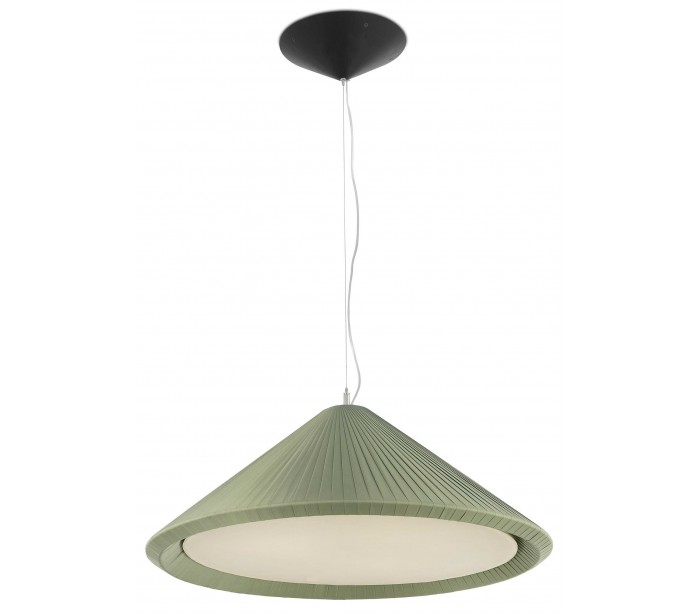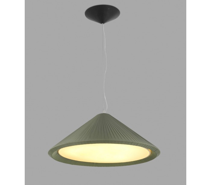 Lysekrone i et moderne design, fremstillet i olivengrønt satinbånd, der giver en lækker belysning i rummet. Lampen måler 70 cm i diameter og anvender 3 x E27 lyskilder på max. 15W (Ekskl.).