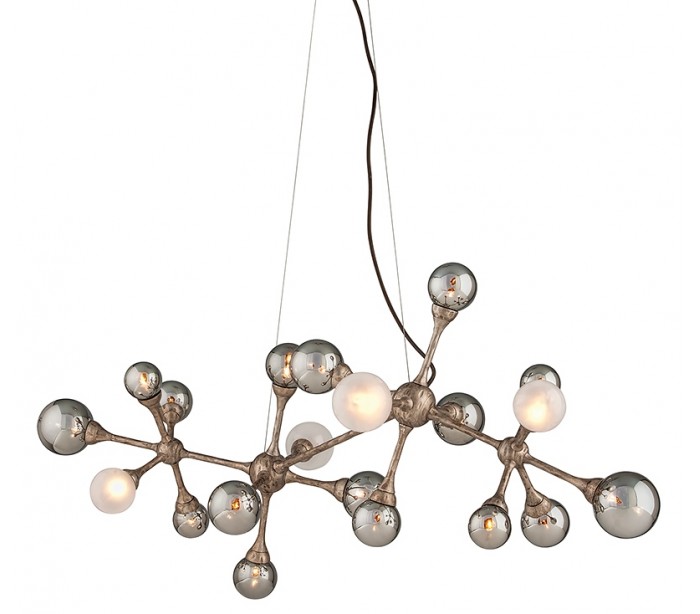 Element lysekrone i et elegant udført design, fremstillet med stel i bronzelakeret jern og glaskupler i hvid og smoked glas. Lysekronen måler 120 x 66 cm i diameter og anvender 20 x G9 LED lyskilder.