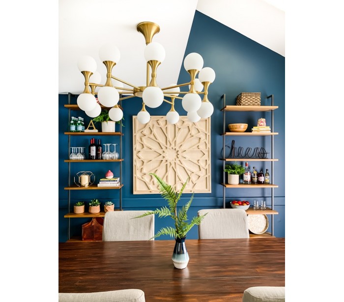 Astoria Lysekrone i messing og glas Ø69 cm 16 x G9 LED - Antik messing/Opalhvid