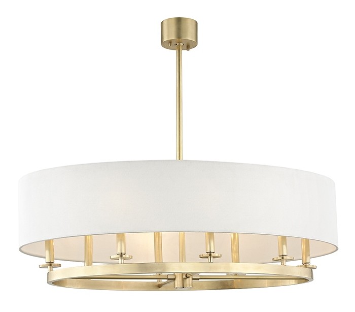 Durham Lysekrone i stål og linned Ø51 x 100 cm 8 x E14 - Antik messing/Offwhite