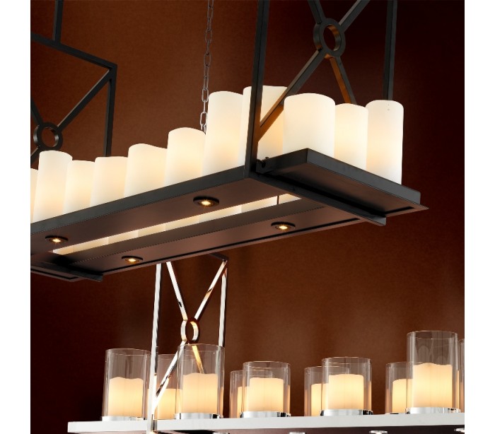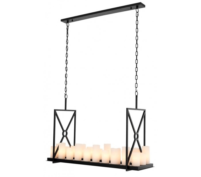 Eichholtz Commodore lysekrone udført i et moderne design med stel i sortlakeret stål, og med lys i cremehvid resin. Lysekronen måler 79 cm i højden fra loftet, og 120 x 39 cm i bredde og dybde. Med til lampen føler en fjernbetjening.