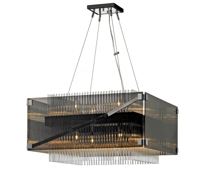 Apollo lysekrone i et moderne udført design, fremstillet i smoked glas og krom og antik bronzelakeret jern. Lysekronen måler 67 cm i bredde og dybde og anvender 8 x E14 lyskilder.
