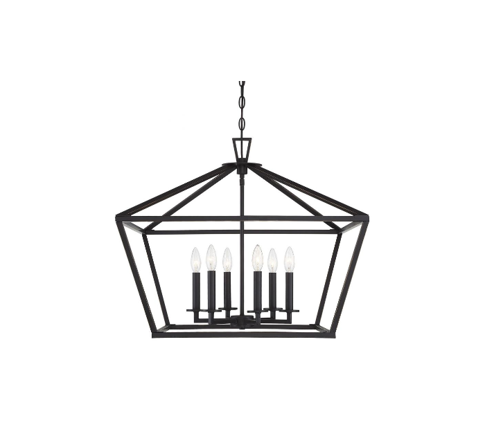 Townsend 6 lysekrone udført i et design af antik bronzelakeret stål. Lampen er fra amerikanske Savoy House og anvender 6 x E14 lyskilder og måler 66 x 66 cm i bredde og dybde og 60 - 360 cm i højden.