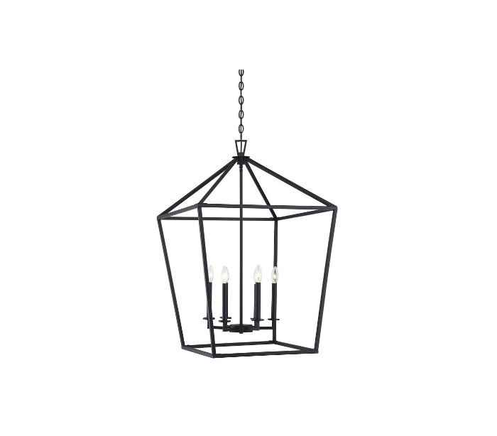Townsend 6 foyer lysekrone udført i et design af mat sortlakeret stål. Lampen er fra amerikanske Savoy House og anvender 6 x E14 lyskilder og måler 61 x 61 cm i bredde og dybde og 93 - 390 cm i højden.