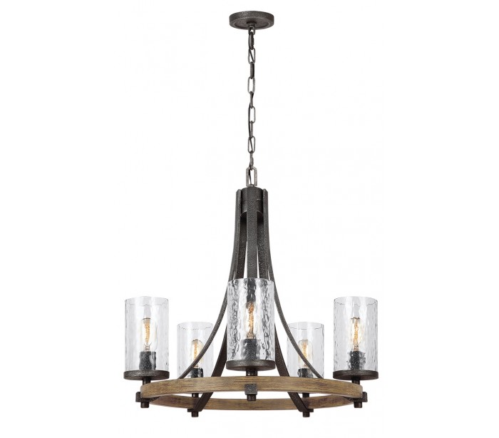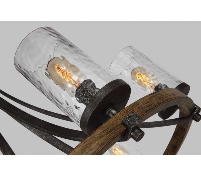 Angelo Lysekrone i stål, egetræ og glas Ø61 cm 5 x E27 - Antik egetræ/Antik gråsort