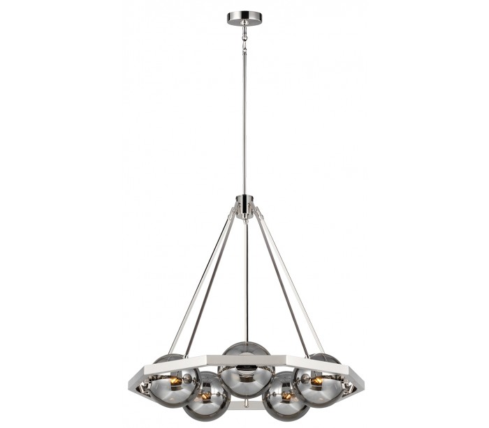 Harper Lysekrone i stål og glas Ø78 cm 5 x E14 - Poleret nikkel/Røget