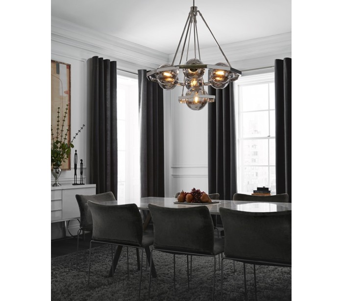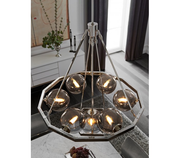 Harper Lysekrone i stål og glas Ø81 cm 7 x E14 - Poleret nikkel/Røget