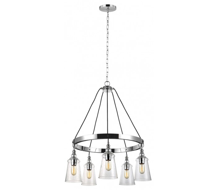 Loras Lysekrone i stål og glas Ø73 cm 5 x E27 - Poleret krom/Klar med dråbeeffekt