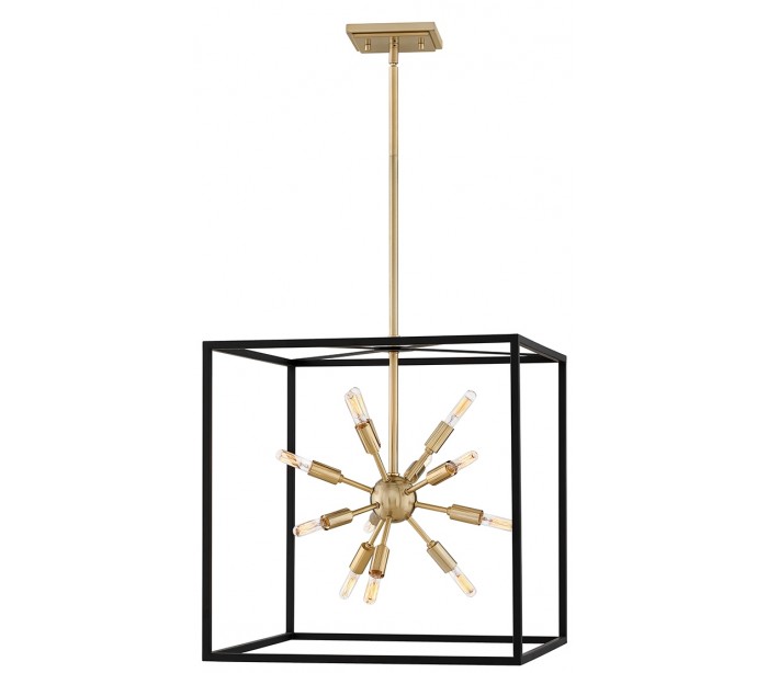 Aros lysekrone i et design fra Hinkley under Quintiesse. Lampen måler 59 - 136 cm i højden og 51 x 51 cm i bredde og dybde. Lampen leveres til europæisk standard til 12 x E14 lyskilder, max. 40W (Ekskl.).