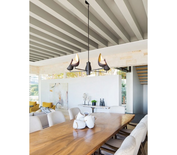 Ren Lysekrone i stål og glas Ø91 cm 6 x G9 LED - Sort/Antik guld/Hvid